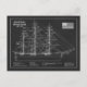 Esta ilustração em estilo de planta destaca o famoso navio clipe Flying Cloud contra um fundo escuro, realçando os detalhes intricados do aparelho e da estrutura do navio em linhas luminosas. O estilo visual se assemelha a um diagrama clássico de arquitetura naval, permitindo que os espectadores apreciem a complexidade de um dos navios à vela mais rápidos já construídos. Construído em 1851 pelo mestre construtor naval Donald McKay, o navio fez parte de uma nova geração de navios clipe extremos projetados para transportar carga através dos oceanos a velocidades sem precedentes.