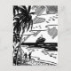 Imagem retrorreflectora em preto e branco de um navio de cruzeiro e duas pessoas acenando da costa. Imagem do Vintage Printers Book (Livro de Impressoras Vintage), de 1940 (sem direitos autorais).