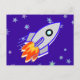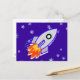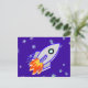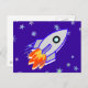 Um foguete de cartoon brilhante atravessando o espaço com estrelas no fundo