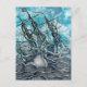 Cartão Postal Navio gigante Octopus Blue Sea Monster