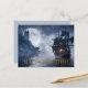 Navio pirata navegando por um castelo com lua de cheio numa noite embaçada