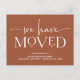 Estes anúncios em movimento, seriamente modernos, terracota, apresentam um elegante texto branco ornamental para um novo olhar boho que ainda é eterno e elegante. Uma na moda para deixar amigos e família que você mudou para uma nova casa!