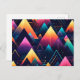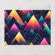 Um padrão geométrico vibrante e abstrato, com triângulos sobrepostos num caleidoscópio de néon. Os triângulos assemelham-se a picos de montanha agitados, criando uma composição dinâmica e enérgica contra um fundo escuro. A imagem é cheia de tons brilhantes, incluindo rosa, laranja, amarelo, azul e roxo, criando um design visualmente estimulante e atraente para os olhos
