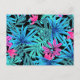 Cartão Postal Neon Pink and Blue Tropical Plant Pattern