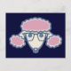 Nerd de poodle de cartoon giro com pelo rosa e óculos estriados com chifre. T-shirts, capuzes, cartas, presentes.