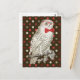 Um nerd bonito, ou hipster, coruja de neve, vestindo óculos vermelhos e uma gravata vermelha de arco. Excelente para aqueles que baixam as corujas de neve e ilustrações bonitinhas de safra, e pok-a-dots.