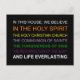 Nesta casa, nós acreditamos no Espírito Santo, na santa Igreja Cristã, na comunhão dos santos, no perdão dos pecados, na ressurreição do corpo e na vida eterna. Viva a sua fé em voz alta.