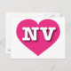Este cartão-postal apresenta um coração rosa-quente vibrante contendo as letras maiúsculas, brancas e em negrito NV, a abreviação oficial para Nevada, o estado prateado. O reverso do cartão postal é vazio, aguardando seus sentimentos manuscritos ou texto personalizado.
