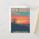 A vintage-style postcard capturing a stunning New Jersey boardwalk at sunset, with the Ferris wheel glowing over the ocean. Perfect for travelers, beach lovers, and collectors of the Garden State’s coastal charm.