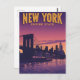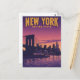 A vintage-style postcard featuring the iconic New York City skyline and Brooklyn Bridge at sunset. Perfect for travelers, collectors, and anyone who loves the vibrant energy of the Empire State.