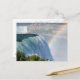 Um close up of Niagara Falls, Nova Iorque com um arco-íris à direita.