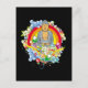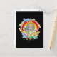 Meditando Buda pacificamente se senta entre um conjunto colorido de estrelas, arco-íris, flores e símbolos Yin Yang! Uma explosão de coloração e de consciência! Olhos pegando presentes de Buda!