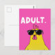 Quem disse que a idade adulta tinha que ser séria? Este frango confiante de óculos sabe melhor. Seja você celebrando o aniversário de alguém, emprego, formatura ou apenas precisando de um riso sobre a absurdidade de ser um "adulto," este cartão postal hilário traz a dose perfeita de humor. Ótimo para amigos que fingem ter tudo sob controle — ou nem sequer tentam.