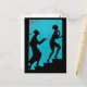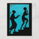 Esta silhueta preta vintage é colocada contra um fundo azul vibrante. Ele tem um homem em uma camisa com uma vela e uma mulher do estilo 1920 subindo uma escada. Há teias de aranha e uma pequena aranha pendurada na frente do rosto da mulher. Veja a minha loja para combinar produtos com este design.