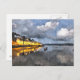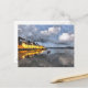 Uma bela aquarela do porto costeiro da aldeia galesa de Aberdyfi. Nuvens e barcos refletidos na maré noturna e luzes brilham dos edifícios.