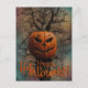 Cartão Postal Noite Assustadora de Halloween com Bruxa