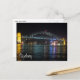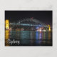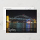 Ponte Sydney Harbor à noite. Cartão postal totalmente personalizável. A ponte de Sydney Harbor é uma ponte de aço através de uma ponte de arco através do porto de Sydney que carregar o tráfego ferroviário, rodoviário, de bicicleta e de peões entre o distrito comercial central de Sidney (CBD) e a costa norte. A visão dramática da ponte, do porto e da Ópera de Sydney, nas proximidades, é uma imagem icônica de Sydney e da Austrália. A ponte é apelidada localmente de "O Casaco Hanger" por causa de seu design baseado em arco.