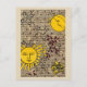 Sol e lua de vintagem com estrelas, folhas e texto antigo em segundo plano