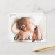 Personalizou este cartão postal de anúncio de bebê com fotos de bebê na frente com um moderno "obrigado você". E incluir a data de nascimento do bebê, o nome do cheio e a mensagem especial no verso. Tipografia moderna e design. Personalize o campo de endereço de devolução e a mensagem do obrigado. Seja fácil e atencioso enviar seu anúncio de nascimento de bebê para a família e amigos. Deixem-nos partilhar a alegria. Parabéns sobre o nascimento do seu filho!