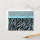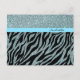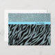 Cartão Postal Nome do Glam Zebra Teal de Silver Glitter Personal