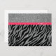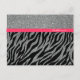 Cartão Postal Nome Glam Zebra Rosa Prata Brilho Personalizado Fe