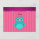Padrão de listras cor-de-rosa com uma coruja/teal/aqua e corações rosas em vieiras, listras personalizadas com o seu nome, presentes em monograma ou com as suas iniciais