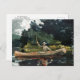 Cartaz de arte fino com a pintura aquosa do artista americano Winslow Homer (1836-1910) The North Woods (1894). Uma paisagem com um homem pescando mosca de uma canoa em um riacho de montanha.