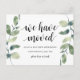 Esta moderna, (nós nos mudamos) o anúncio do nosso novo endereço de sonho, nossa nova casa, anúncio de mudança, cartões postais de mudança de endereço em tema botânico de folhas de eucalipto em aquarela verde. É a maneira perfeita de anunciar aos seus amigos e familiares que você se mudou.