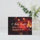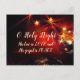 O cartão-postal de Natal inspirado retrata lindas luzes estelares e ornamentos em um fundo âmbar abstrato escuro. Ele apresenta um verso do adorado Natal Carol O Santa Noite, "Sua lei é o AMOR e seu evangelho é a PAZ."