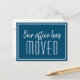 Temos um novo endereço movendo cartões postais para uma empresa moderna, de negócios ou de chic, buscando atualizar seus clientes em um novo local. Nosso escritório se mudou. Tipografia clássica e minimalista em cartões azuis e brancos elegantes para sua empresa. Personalize a alteração de endereço no verso.