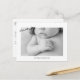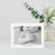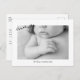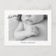 Foto Moderna De Novo Nascimento, Obrigado Cartão-Postal. Dois Lados. Mensagem atrás. Informação de nascimento nas costas. Filtro preto e branco aplicado à foto. Cartão Postal. Tipo de letra bonito.