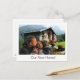 Anuncie as boas notícias da "nova casa" aos amigos e familiares com este cartão-postal fofo! A ferramenta de edição de design do Zazzle inclui removedor de fundo IA, para que você possa adicionar facilmente sua foto de família à sua casa para obter a mesma aparência! Ou faça uma selfie com sua casa. Ou apenas use sua tela de fotos da casa. Texto frontal e posterior personalizável.