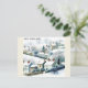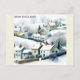 Qualquer um adoraria receber este cartão postal viagem com a ilustração aquática de uma vila de inverno nevada em Nova Inglaterra!