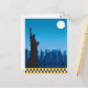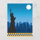 Uma fronteira ou quadro que apresenta o horizonte de Nova Iorque à noite e uma silhueta da Estátua da Liberdade em primeiro plano. A borda inferior é a prancha de checagem do Nova Iorque táxi. Personalize este produto com um nome ou mensagem para torná-lo verdadeiramente exclusivo