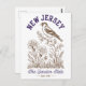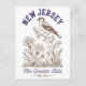 Celebrando o apelido de Nova Jersey, “O Estado Jardim”, este design minimalista apresenta um pássaro pousado cercado por flores silvestres e grama exuberante. Marcado “Est. 1787”, reflete a beleza natural e o charme tranquilo do estado em um estilo vintage desenhado à mão.