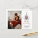 Nova casa para o cartão de anúncio de feriados com uma ilustração de aquarela de um Enfeites de natal com uma dentro de casa vermelha.