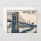 Cartão Postal Nova York Brooklyn Bridge Skyline Bold Retro Viage