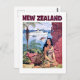 Cartão Postal Nova Zelândia, mulher nativa na costa