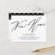 Novo anúncio de endereço preto-e-branco apresentando uma fonte moderna de script com uma xadrez de coordenação para um toque extra.