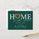 Este anúncio comovente mostra o ditado "Cartões de natal de Nossa Nova Casa Doce" com uma coroa de corações sagrada e morna colocada sobre um fundo verde. O anúncio é perfeito para enviar aos amigos e à família durante a temporada de férias para informá-los sobre seu novo endereço. A frente do anúncio apresenta o ditado e a coroa, e a parte de trás do anúncio tem um padrão de xadrez verde e vermelha de coordenação. O design geral é festivo e convidativo, e o anúncio certamente coloca um sorriso nos rostos de seus entes queridos.