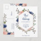 Essas mudanças modernas de endereçamento de postais apresentam bonito flores cor-de-rosa-claro e azul-marinho pintadas de aquarela em um fundo branco nítido. Um estilo 'chic' e 'trendy' que também apresenta uma imagem geométrica rosa dourada falsa para uma bela aparência 'on-cent'. Uma mistura de texto ousado, serif e script manuscrito que diz "novo endereço". Uma maneira maravilhosa de deixar amigos e familiares saberem que se mudaram.