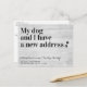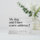 Meu Cachorro E Eu Temos Um Novo Endereço! Deixe o seu melhor amigo anunciar sua jogada com este cartão giro e engraçado de comunicação do cachorro. Personalize os nomes com o cão e o seu novo endereço. Este novo cartão de anúncio de movimento de endereço é obrigatório para todas as mães de cães, pais de cães e amantes de cães! COPYRIGHT © 2020 Judy Burrows, Black Dog Art - Todos Os Direitos Reservados. Novo endereço que movemos Cartão-postal de lançamento de movimento do cão