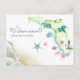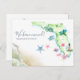 Anúncios de mudança vibrantes em aquarela botânica deixam amigos e familiares sabendo sobre a sua nova casa doce lar! O design apresenta uma réplica da minha pintura original à mão em aquarela do estado da Flórida com tartaruga marinha, palmeira, estrela-do-mar, flamingos, farol de Jupiter, peixe-leão e folhas de palmeira monstera em tons tropicais de rosa, azul, turquesa e verde. O seu anúncio personalizado (mostrado com "mudamos"), o(s) seu(s) nome(s) e detalhes de mudança de endereço são definidos em uma tipografia de letra manuscrita e fonte sans tradicional em um azul-marinho rico. Adicione uma mensagem personalizada para amigos e familiares no verso deste cartão postal do mapa costeiro da Flórida com espaço para o seu selo e endereço do destinatário. Está procurando por um arquivo digital? Posso ajudar. Converse comigo para