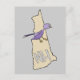 Cartão Postal Novo Mapa NH de Hampshire com uma concha roxa engr