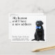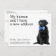 Meu Humano E Eu Temos Um Novo Endereço! Deixe o seu melhor amigo anunciar sua jogada com este cartão de anúncio giro e engraçado. Personalize os nomes do cão ou gato e o seu novo endereço. Este anúncio em movimento do labrador negro é um imperativo para todos os amantes do labrador e amantes do cão. COPYRIGHT © 2020 Judy Burrows, Black Dog Art - Todos Os Direitos Reservados. Cartão-postal do Anúncio de Movimentação do Cachorro do Novo Endereço Preto