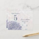 Este cartão postal com o número da mesa de casamento doce tem um buquê floral azul-cobalto escuro, azul-periwinkle macio e azul-lilac púrpura na parte inferior esquerda com algumas pétalas voando para a direita. No fundo, há uma cor damasco esmaecida e um gráfico de listras. No topo, você pode personalizar facilmente o número da mesa junto com os nomes da noiva e do noivo e a data da cerimônia de casamento. Isso seria excelente para um casamento de primavera ou verão.