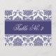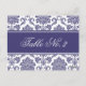 Cartão Postal Número da Tabela de Casamentos tema damasco Azul