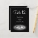 Simples bandas de casamento decoram este cartão postal da mesa. Estão também disponíveis cartões de lugar coordenadores e rótulos para garrafas de vinho.