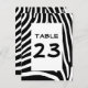 O padrão de listras zebra é preto e branco, com espaço para um número de mesa. Você pode personalizar e apagar a palavra "Mesa" e centralizar o número.
