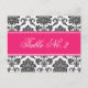 Cartão Postal Número da Tabela do Casamento tema damasco Fuchsia